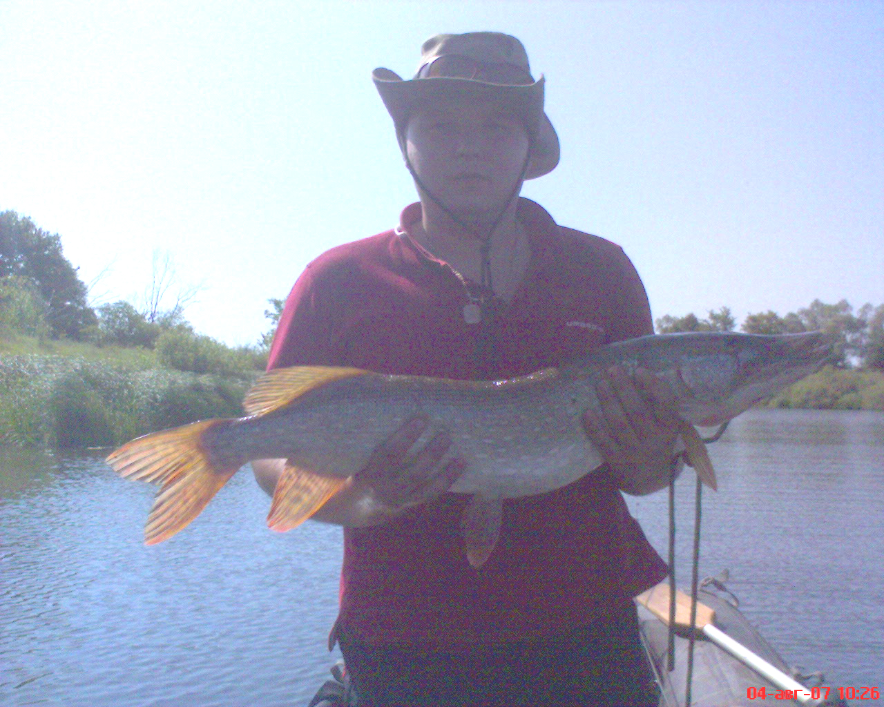 Добрый день! Был сегдня на рыбалке на Днепре в районе г.Славутича, на одной забоке поймал вот такую красавицу... Палка JAXON SOLARIS 5-25g. Катушка JAXON TRONX 200. Воблер JAXON CLASSIC 9см. Леска JAXON Crocodile 0.25 Вторая 2,00 кг. и до кила 5 штук...