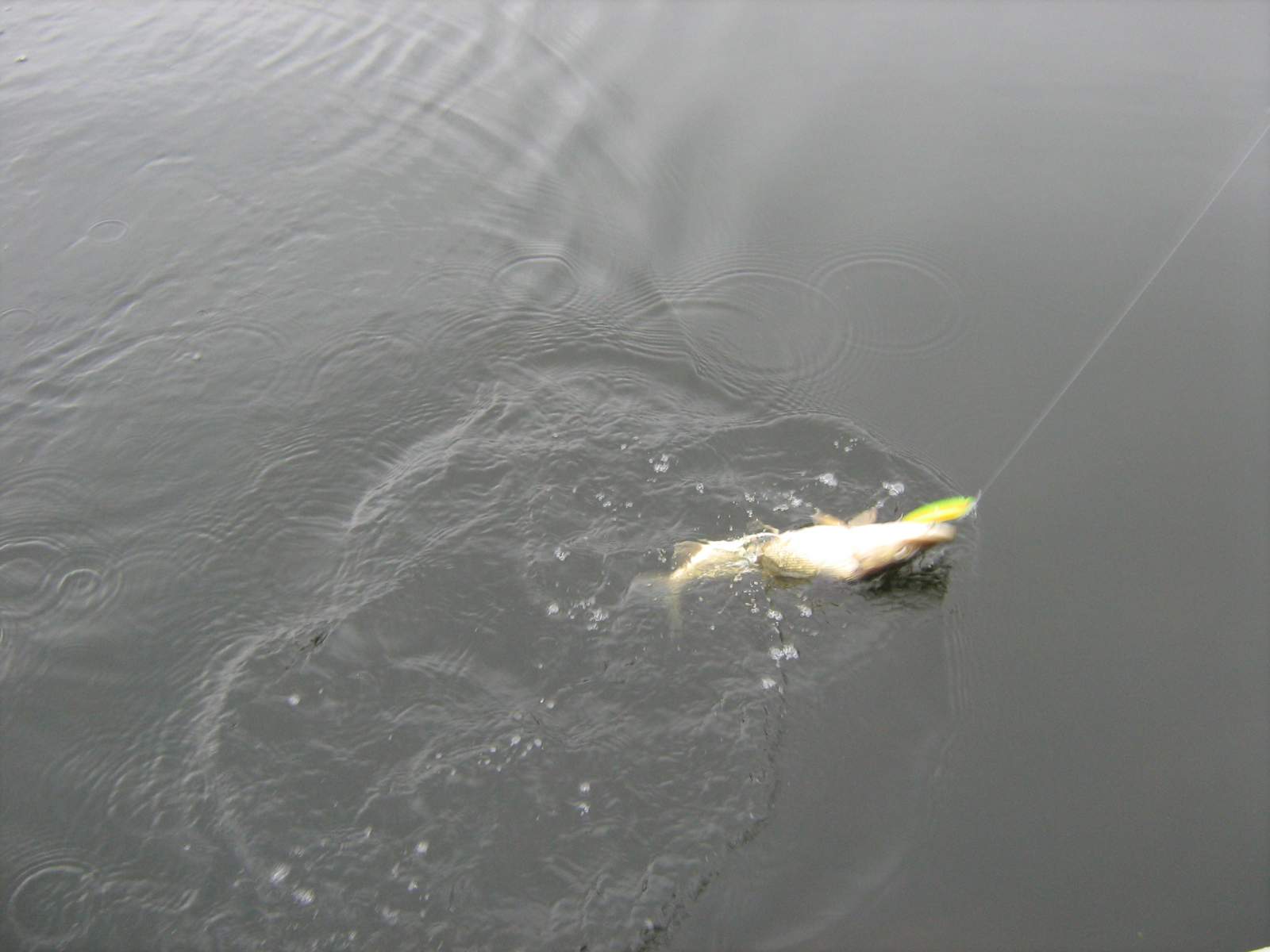 Поймали немного щучек, немного окуня . Виктор отличился, взял неплохого трофея.