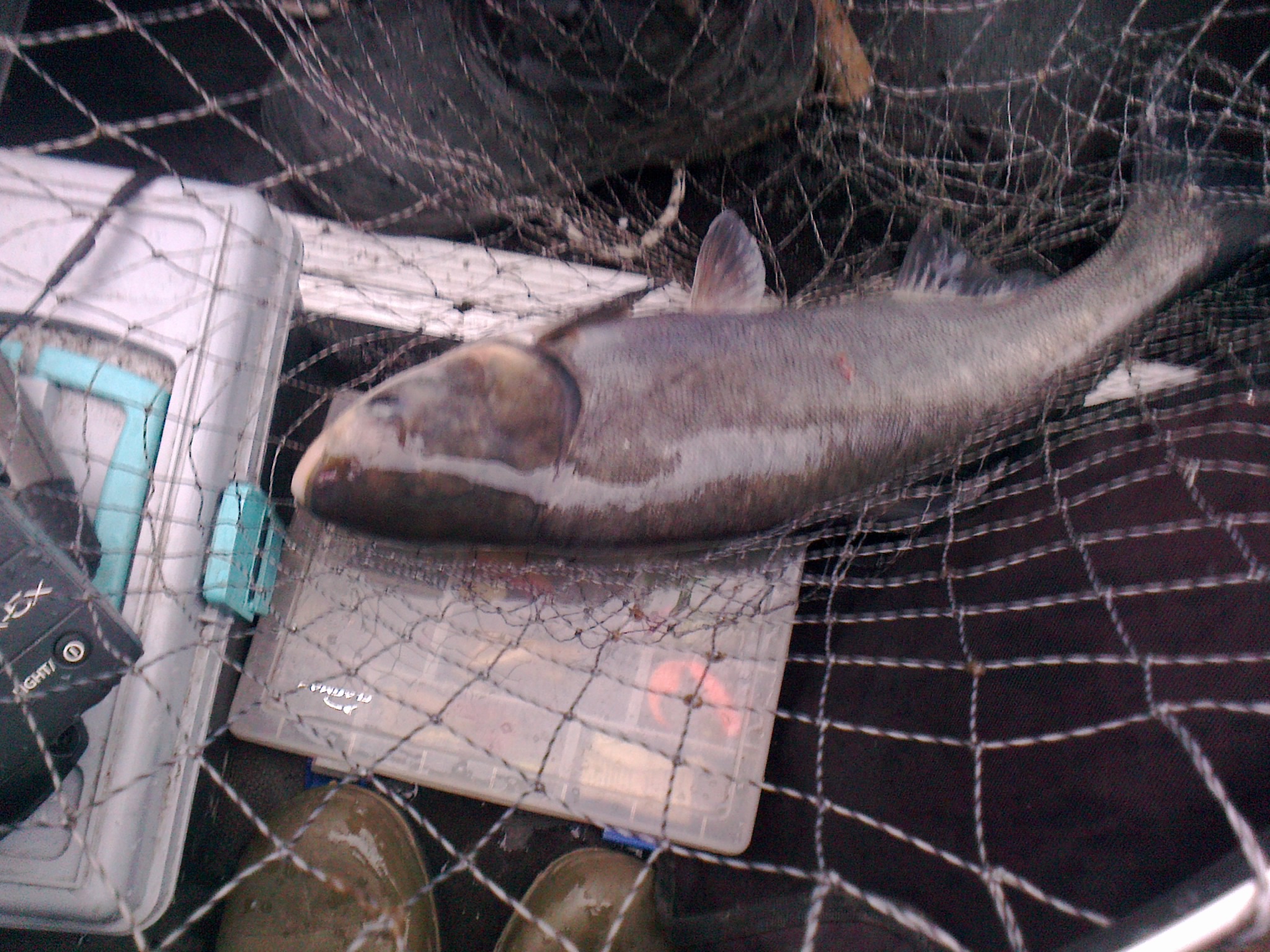 Сегодня тремя экипажами :company: бороздили воды Макартов от Андреевки до Новой Зари - погода как обычно не ответила за прогноз - губатый дул с большим энтузиазизмом - метров до 6-7 с утра стали на одно интересное место пошли невнятные поклевки, потом тык, подсечка и визг фрикциона - борьба шла минут 10- 15 еле поднял - обрыбил в экстремальных условиях новый гаррик до 10,5 гр, палка справилась на ура - в конце концов показался монстрик - это оказался лобатый кила на три - практически по чесному за бороду ( по итогу дома 2,7 ):somyara:.
