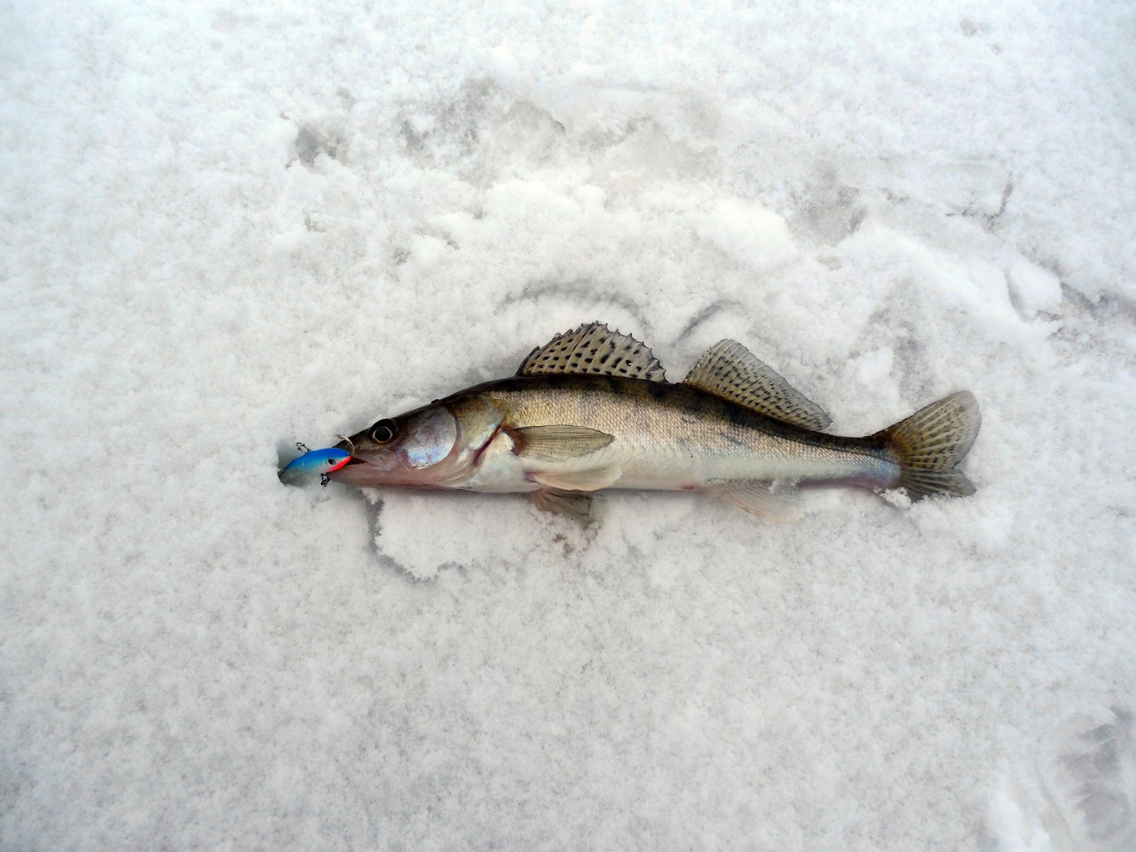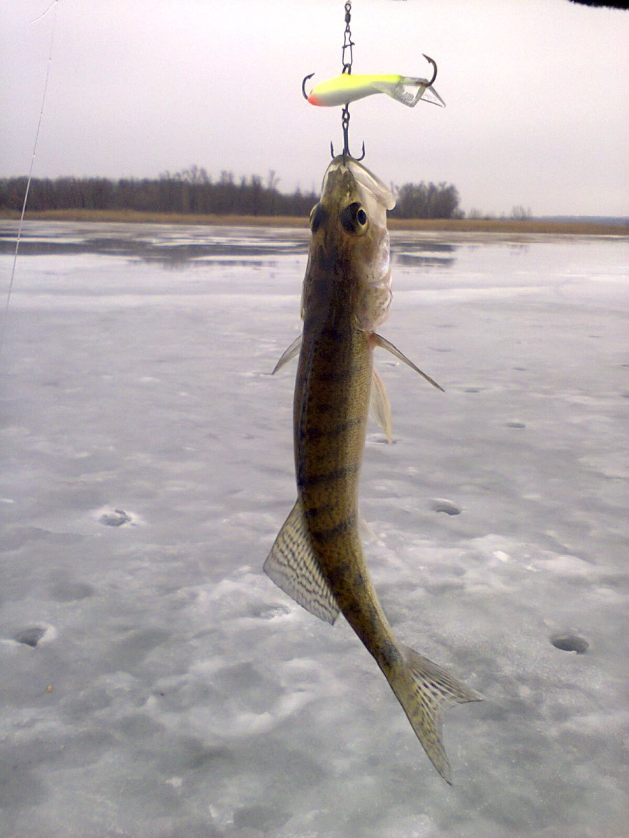 Открывали зимний сезон в субботу 12.01 в районе дамбы. На лед вышли около 8:00, выставили восемь жерлиц с магазинским карасиком и принялись, впервые в жизни, испытывать балансиры. До 15:00 похвастаться было нечем, поймали десятка два окуня-живца на мотыля, заработали несколько ударов и пару мелких судачков на балансиры, судачьи блесенки молчали. После трех часов взял бур и снова в поиски "большой рыбы", которую таки нашел, в течении десяти минут из одной лунки было два судака 1,1 кг, 2,1 кг и один сход на балансир LUCKY JOHN(полосатый на фото). Потом были еще удары, но дотемна так ничего и не зацепил. Спасибо огромное товарищу, который помог забагрить рыбу(в конце видео он достает щуку), т.к. свой багорик оставил возле жерлиц, со словами "взять зонт - дождя не будет". Жерлицы у нас молчали весь день, как оказалось, место для них было не совсем удачным, некоторые соседи выловили по 1-2 щуки, у некоторых тоже пусто. Количество пробуренных лунок стремится к сотне, впечатления отличные) Тестировал новую "мыльницу" , снял чуток видео.