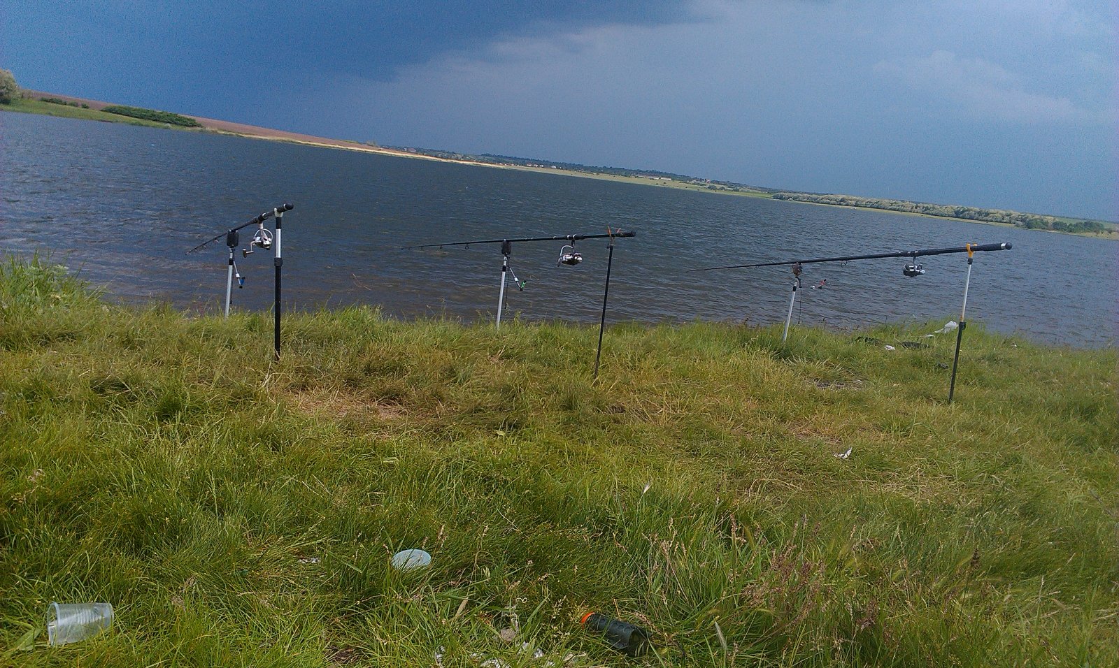 11-00, маркерюсь. Удивлен, на расстоянии примерно от 70м., нет ни одной бровки, дно ровное как в чистом поле. Нащупав, как мне показалось ракушку, решаю ловить именно там. До захода солнца, лениво щупаю дно, лениво ловлю козлов грамм по 200-300 и готовлюсь к вечерне-ночно-утреннему клеву. Именно тогда, по моим наблюдениям рыбка клюет на этом водоеме.
