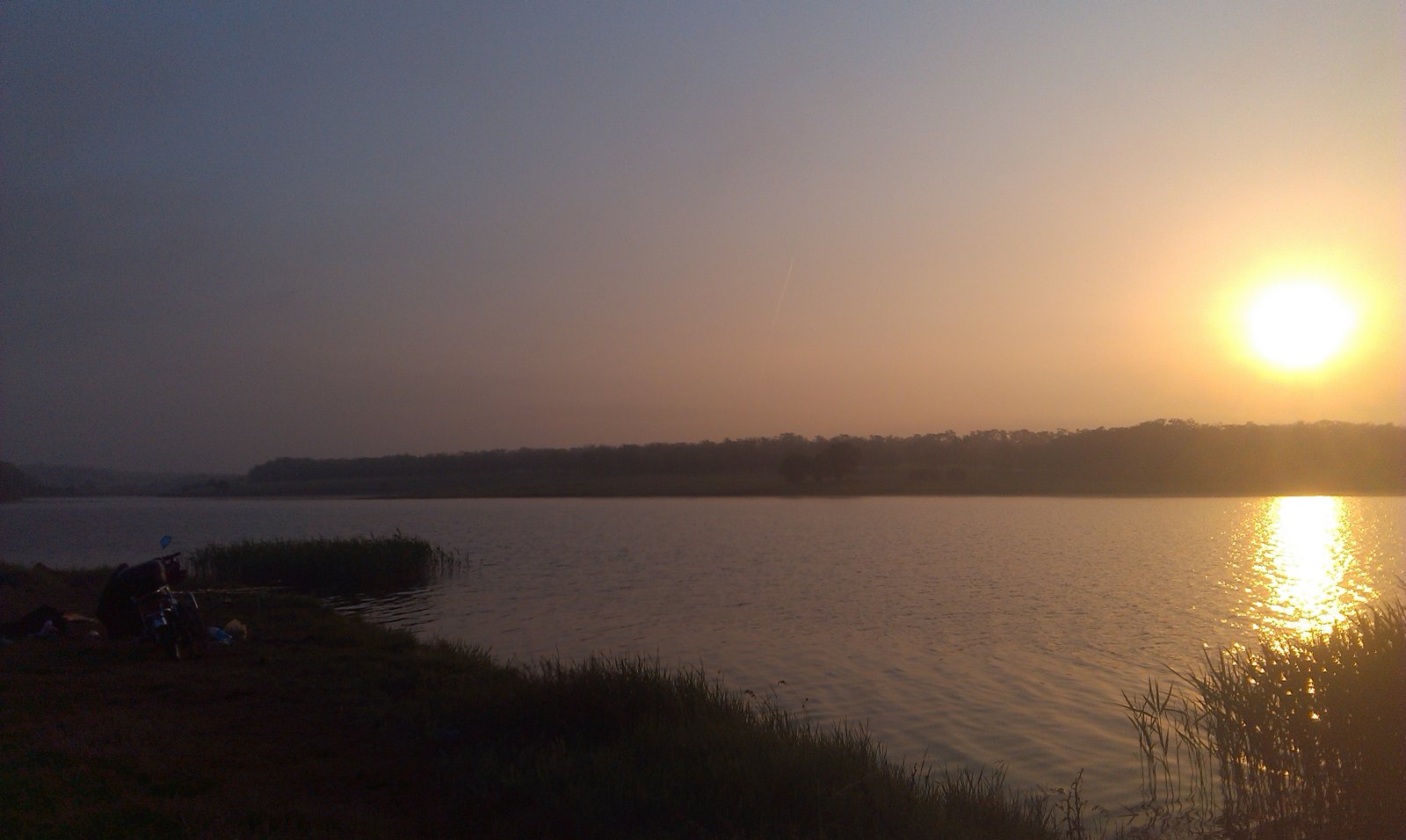 Хотелось как-то разнообразить место, поэтому решили открыть для себя ранее неисследованную левую сторону водохранилища. Выехали немного позднее запланированного, так что на месте были, как говорится, в "свинячий голос". Переехали дамбу, проехались вдоль береговой линии - яблоку негде упасть, аншлаг полный. Исследовать так исследовать, поехали вверх по течению. Сказать, что народу очень много - ничего не сказать. Еле-еле наши место за Андреевкой, и решили уже останавливаться, чтоб успеть разложиться до заката.