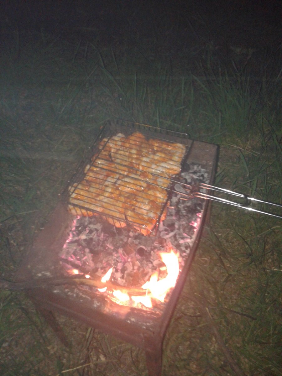 Разложились, пробили дно - мелко, трава... но альтернативы нет. Закормились, разбили лагерь. Уже в темноте первая поклевка и ладошечная плотвичка на крючке. Еще минут через 20 следующая поклевка - и подлещик грамм 400-500. Думаю, ну вот, будет весело, а не тут-то было... после 22-30 - тишина. Пожарили мясо, выпили по 50 за первый выезд с ночевкой в сезоне, завалились спать.