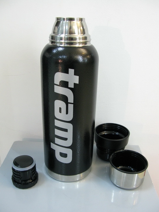 Видел термос шведской фирмы "Примус" - классный! ККрышки-чашки с двух сторон! И держит хорошо. Кстати, если посмотреть на Ютюбе ролик как резали термос Стенли, в нем тоже что то насыпано.