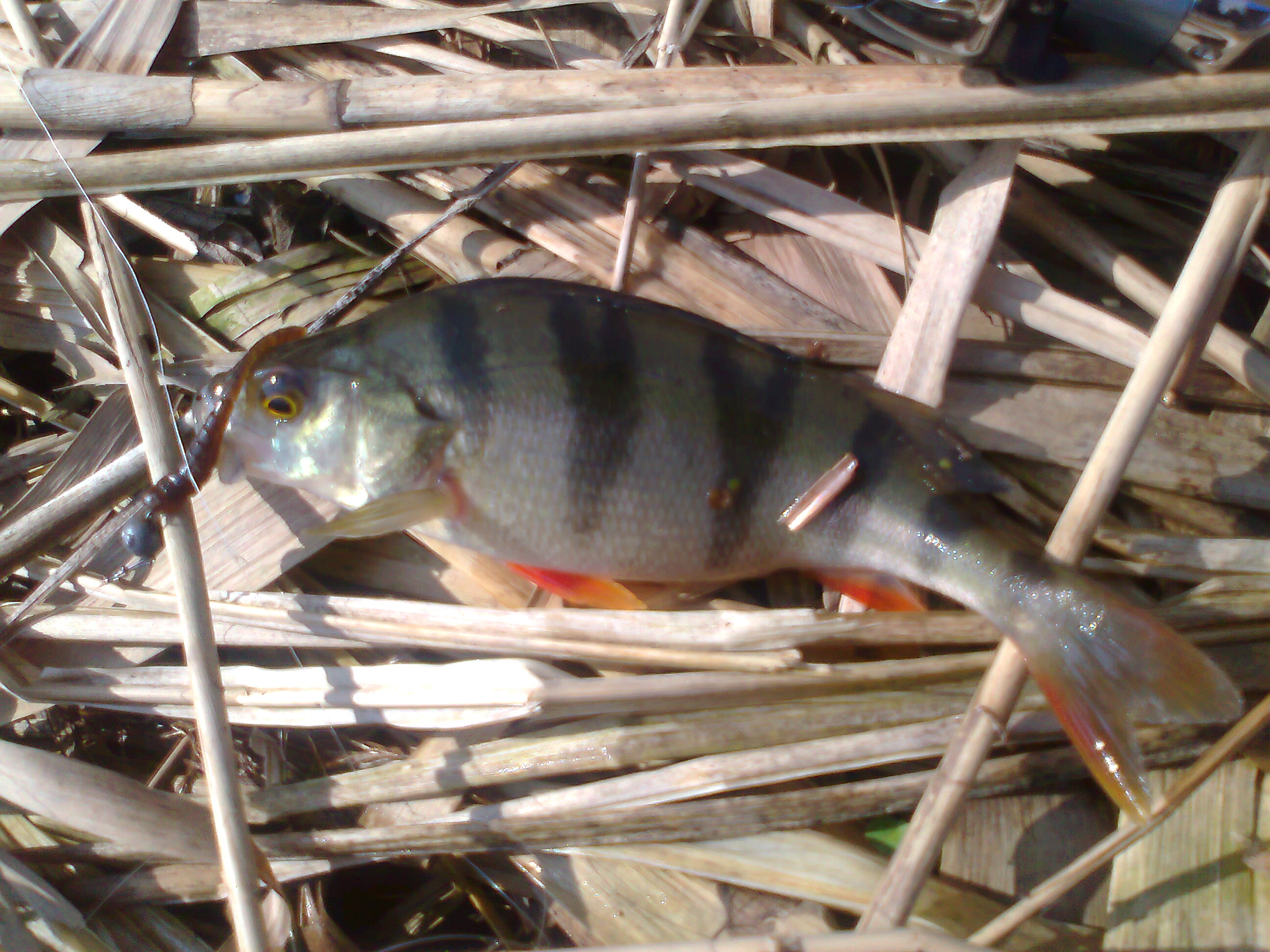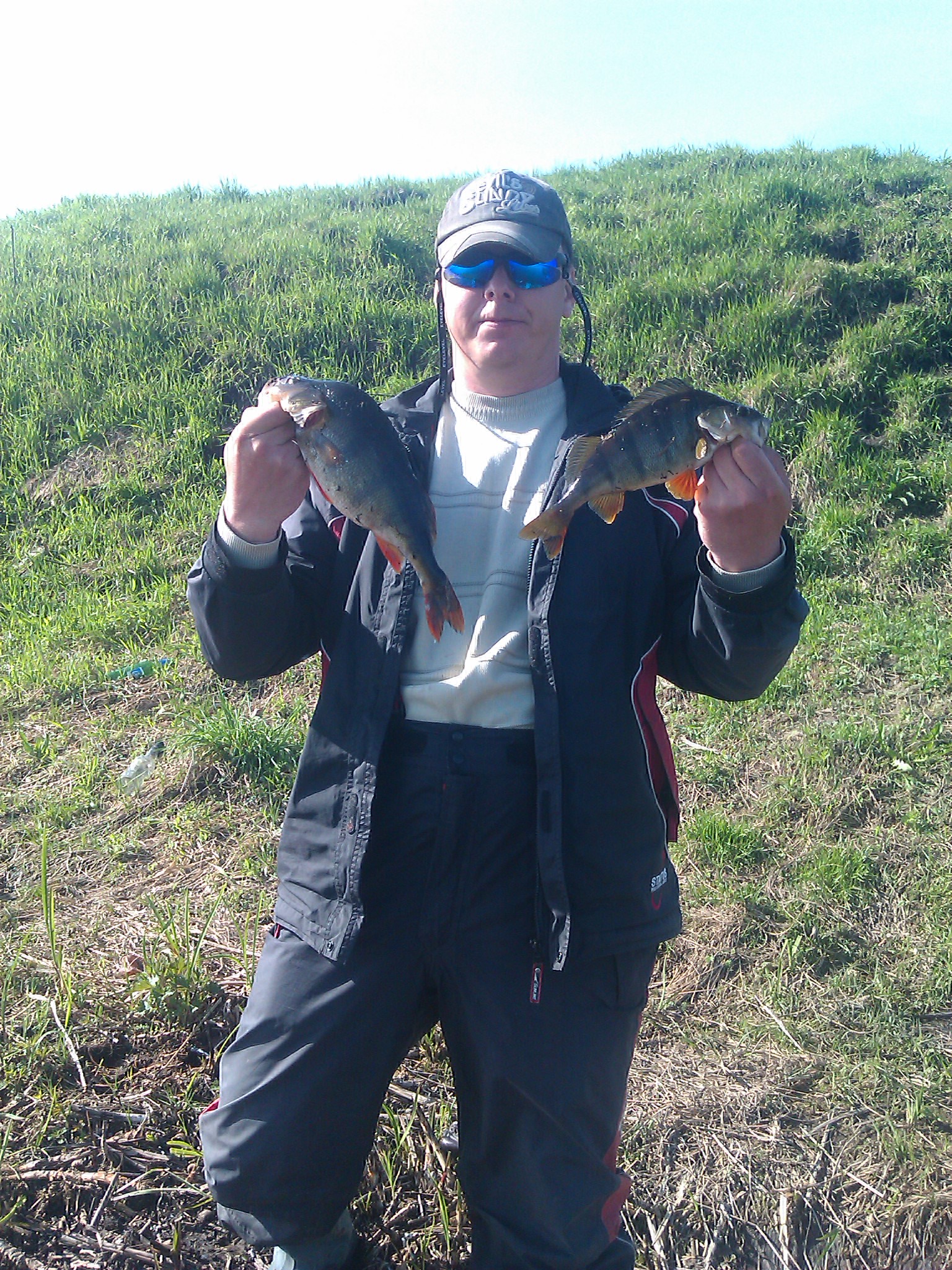 Та вуж то,ну і пару моїх фоток,окуні з річкі Луга,було ще з десяток але розмір зовсім нікудишній,ну і під занавіс спустив щучку грам 150 ,думав непоганий окунець.Теж пробував ловити головня але мав тількі виходи,повзати треба по березі щоб підкрастись до них
