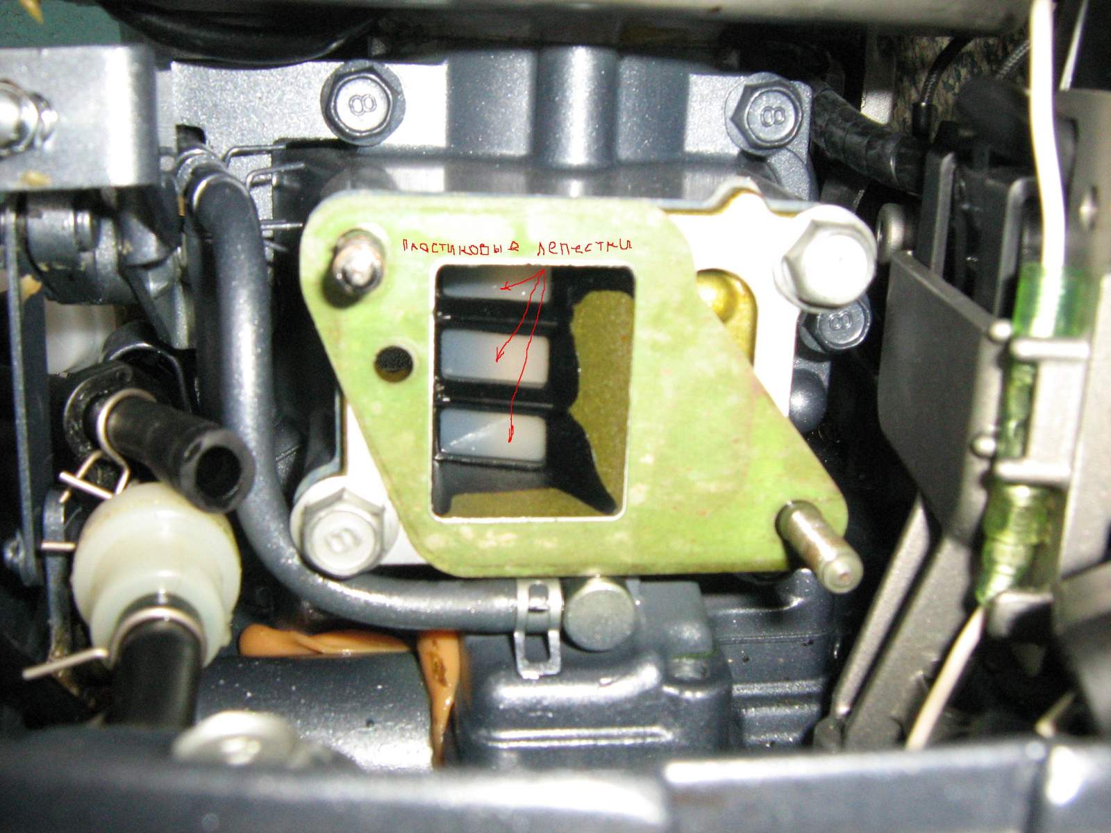 После карба смесь попадает через прокладку из трёх пластиковых подвижных лепестков в картер коленвала(фото),понимаю каким образом происходит смазка коленвала с шатуном.Когда поршень движется вверх ,вакуумом засасует смесь в картер через открывшиеся лепестки,а потом при ходе поршня вниз лепестки закрываются и под давлением смесь по резиновым шлангам (трубопровадам) идёт в камеру сгорания(фото).