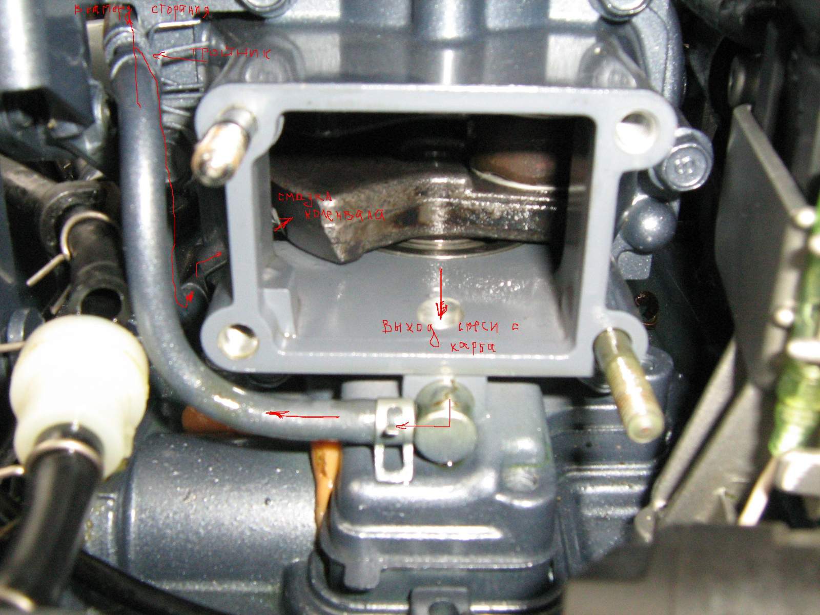 Вчера весь день посвятил мотору,Yamaha 5 CMHS 2 такт,в надежда всё таки завести его. Вставил в бочку с водой,поставил 2шт фильтра тонкой очистки топлива,один ниже краника под крышкой,второй на подключении внешнего бака до груши,подкл оба бака (залил новый бензин 95+масло 20грамм на литр).Все попытки завода результата не пренесли,даже ни разу не схватил,ни чихнул-полный труп!!!Фильтры новые,поэтому хорошо видно что к карбу подача топлива есть 100%,воздух тоже открыт на обоих баках,краник переключаю в зависимости от какого бака завожу.Принято решение лезть в карбюратор.Когда снял и вскрыл его был просто в шоке ,столько грязи (застывшей смазки в виде как солидол) я ещё не видел.Поразмыслив понял ,что мотор давно стоит и предыдущий хозяин после последнего использования не выжег весь бенз с карба и оставил полный карб бензина.По истечении времени бенз испарился а масло застыло и закоксовало всё что возможно,залипли все жиклёры,игла,каналы,трубопроводы.Купил в магазине очиститель для карбюраторов (карбоклинер),промыл,продул насосом все каналы и жиклёры-ну думаю победа!!!Кстати в процессе чистки делал фотки (может кому пригодится),№ карба 6Е305 1Е,жиклёры №80 (или 08) и №52