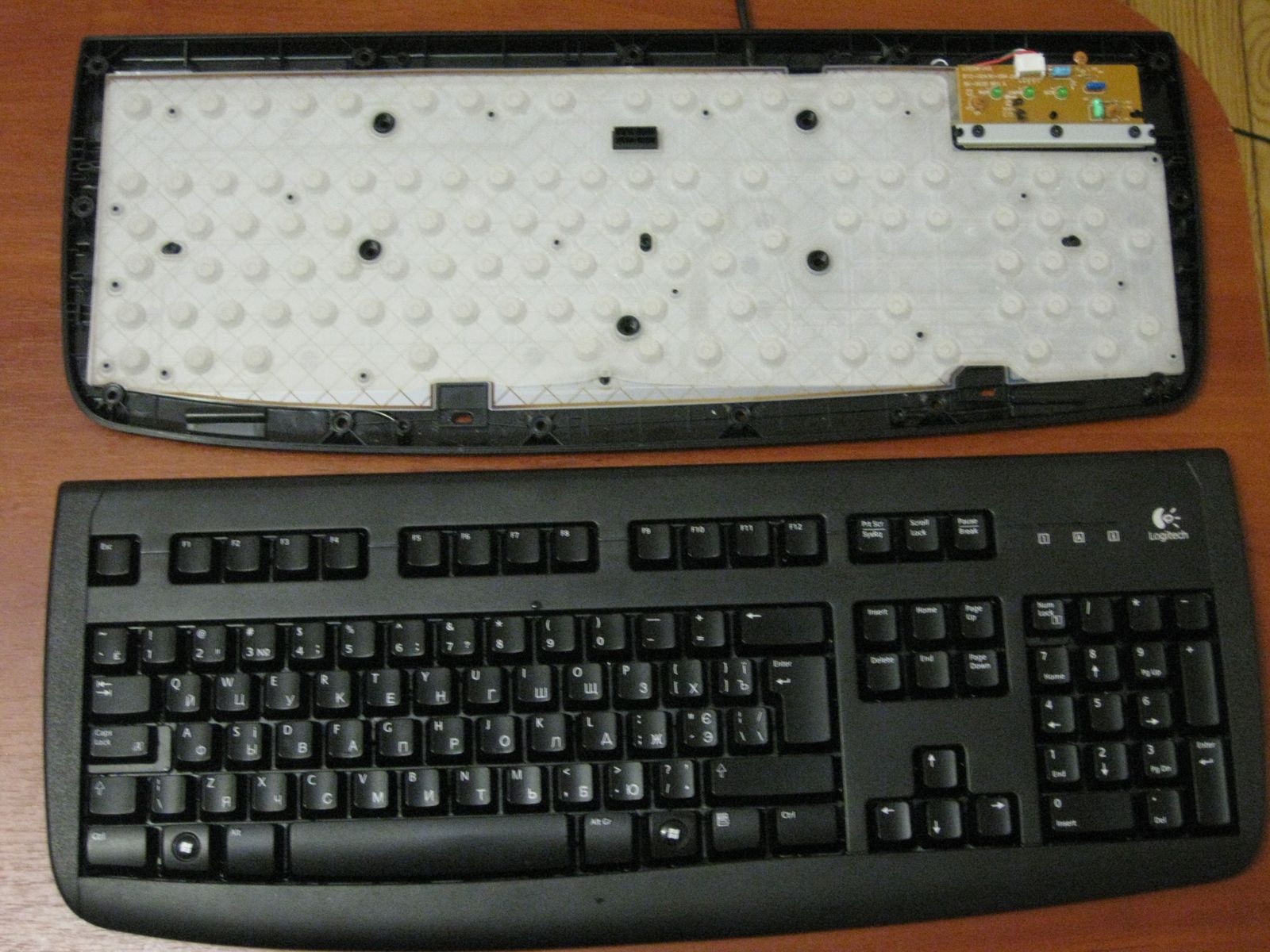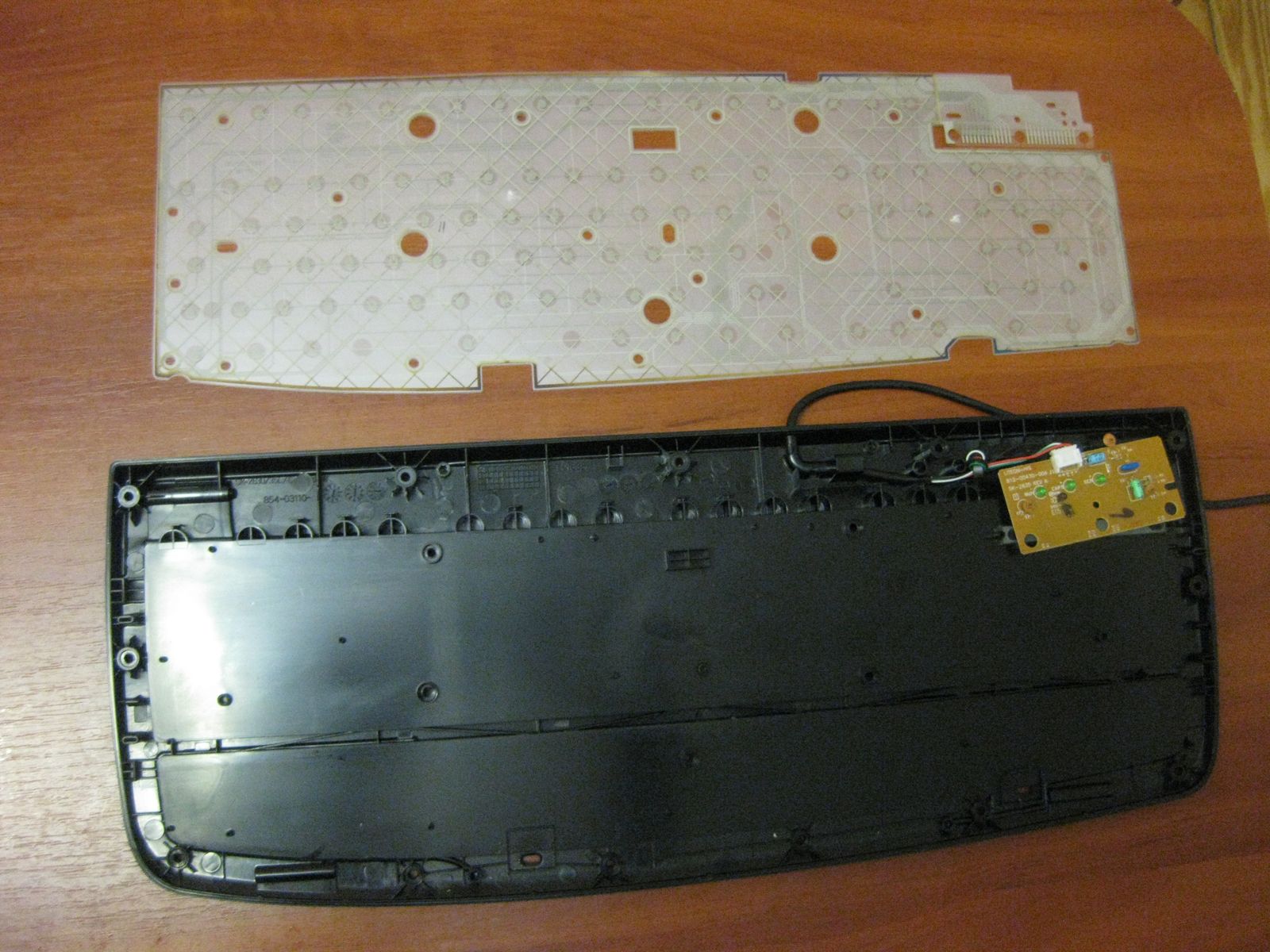 Может кому пригодится... На днях залил клавиатуру квасом. Мыл обычной водой, тер губкой для мытья посуды. Процесс разборки заснял - собирать в обратном порядке . Только надо соблюдать осторожность при разрывании на 3 составляющие слюды с микросхемами (фото 5), чтоб случайно не повредить дорожки. Весь процесс от разборки до полного сбора и подключения занял около 40 мин (это учитывая то, что я чистил ее первый раз). Работает на ура.
