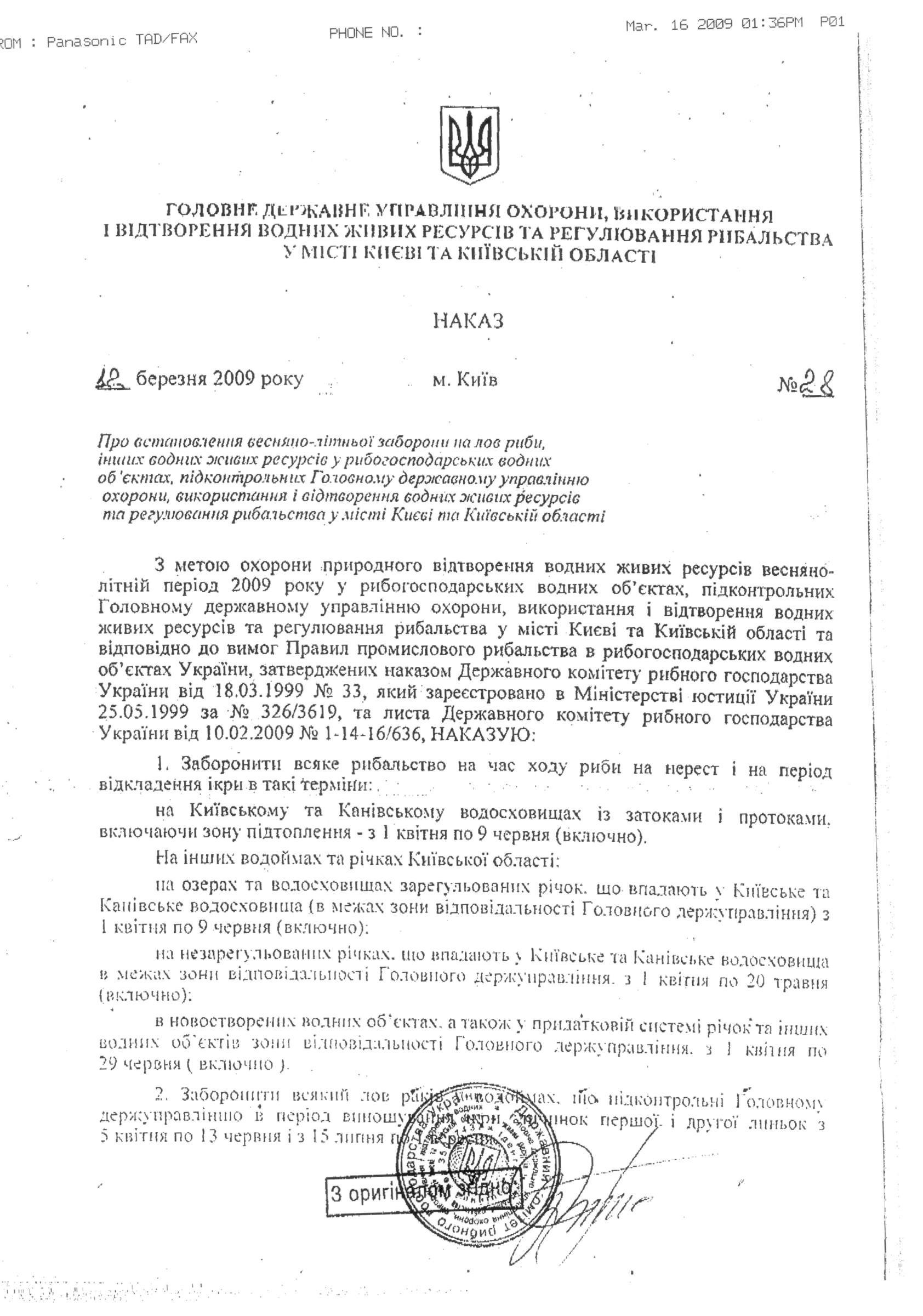 Наказ № 28 від 12 березня 2009 року