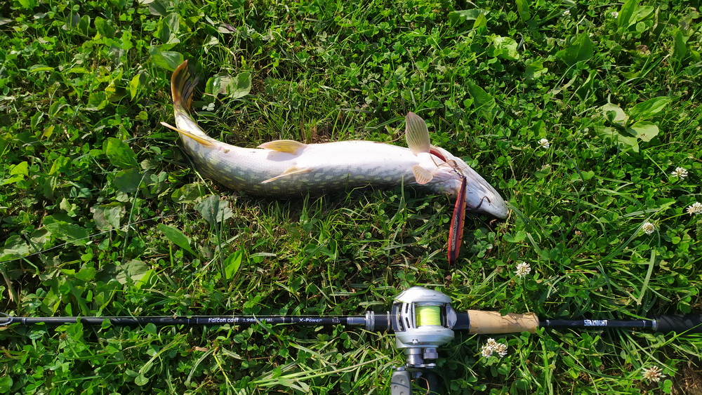 Но благо есть приватные водоёмы. На них правила устанавливает хозяин, он же устанавливает размер платы за рыболовную сессию. В моём случае день рыбалки около 5 евро. Хочешь забрать рыбу домой? Не вопрос, доплати за каждый килограмм. Прямо под боком у меня оказался такой водоём. Первая рыбалка на ДАМовскую зубочистку и силикон от Юры Фанатика принесла несколько окуней и сход небольшой щучки. Следующая с некоторым осмыслением водоёма и китайскими поделками от суперконтинент добавила окуней и борьбу с приличным экземпляром зубатого хищника. В результате на али был заказан бэйткастинговый твичевый комплект от Сикнайт и биркинговские копии японских воблеров. Следующая рыбалка на сикнайт принесла двух щучек 53 и 55 см общим весом 2670. Обе на биркинговскую копию 110 орбита в цвете мат тайгер на среднеагрессивный твич. Практически с одной локации, хотя водоём обошел по кругу. Кроме копии орбита 110 полоскал младшего брата в 80 размере, копию магаллона, копию вижина 110, ещё пару подделок. Из оригиналов тини магаллон и джиб. Не отработал никто.