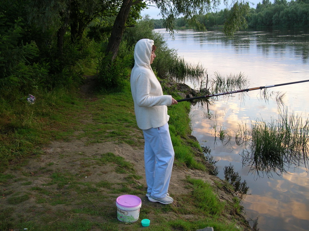 Я как-то свою половинку взял на рыбалку. Все ей приготовил, забросил удочку. Она меня зовет через некоторое время, говорит;" а вот поплавочка нет, это что рыбка клюнула?". Короче вытягивает краснопчика и начинает орать: "аааааа, сними ее, я ее боюсь "! Ну вот так я время от времени приходил ей на помощь.