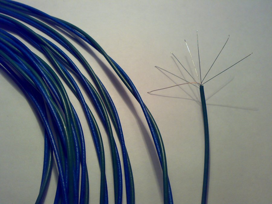 Этот продаётся именно так, как на фото - два провода, в каждом одна медная жилка и шесть стальных. Стоил когда-то копейки - гривна за метр розница. Получаем 12 метров стальки на поводки . Сталь на жилках отличная - не мягкая, не жёсткая, для поводков - самое то ! Перегиб на таком выравнять ногтем - две секунды. Она (я о стальной жилке в этом проводе), кстати, и тоньше, чем на том, что 3 плюс 4, и, как мне показалась - прочнее.