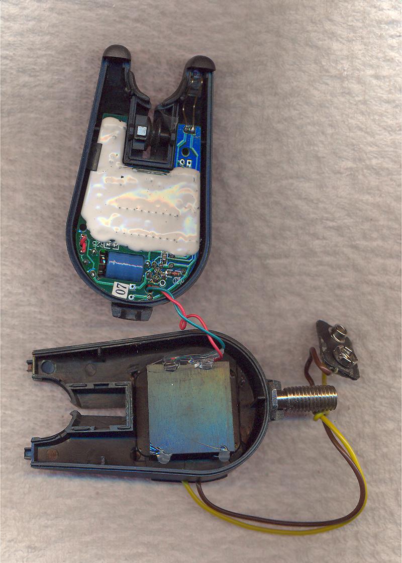 Функции, которые должны быть обязательны в приборе (мое мнение): -тональность (выбор мелодий) помогает нам разобраться (на расстоянии) какой сигнализатор сработал. На каждую палку свой сигнализатор, своя мелодия, свой цвет. -вкл./выкл. сигнализатора без сбоя предварительных настроек. -цифровая связь с пейджером -регулятор громкости -20сек. и более непрерывного светового сигнала. Помогает нам определиться какая палка сработала (визуально и на слух) -влагозащитное покрытие электроники -настройка чувствительности (тюнинг) - питание желательно 9-12 воль. Крона намного дольше служит, чем пальчиковые батарейки. Сам пользуюсь сигнализаторами «FLAGMAN» которые подверглись тюнингу с моей стороны. 1. замена светодиода на другой с направленным пучком света. Днем при ярком свечении солнца его легко заметить (свечение как при сварке) цена 3-5гр. 2. ролик чувстивельности (направляющий леску) добавил 2 магнитика на сам ролик. Теперь при прокручивании (подтяжки лески) ролика на 90 градусов срабатывает сигнализация световая и звуковая. Настройка завода 180-360 градусов. ( в зависимости от модели) 3. питание переделал под крону. Свингер-также установил светодиод только свет рассеяный и под цвет пластика. Подключение к гнезду пейджера на сигнализаторе. При поклёвке загорается и виден далеко. В этот же свингер можно вставлять светлячок на ночь. Своим знакомым сделал такие же переделки. Все довольны. На фото видны изменения