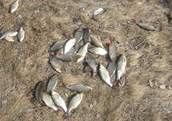 В результате незаконного лова была обнаружена рыба: щука - 8 шт., Судак - 3 шт., Плотва - 12 шт., Окунь - 12 шт., Карась - 90 шт.