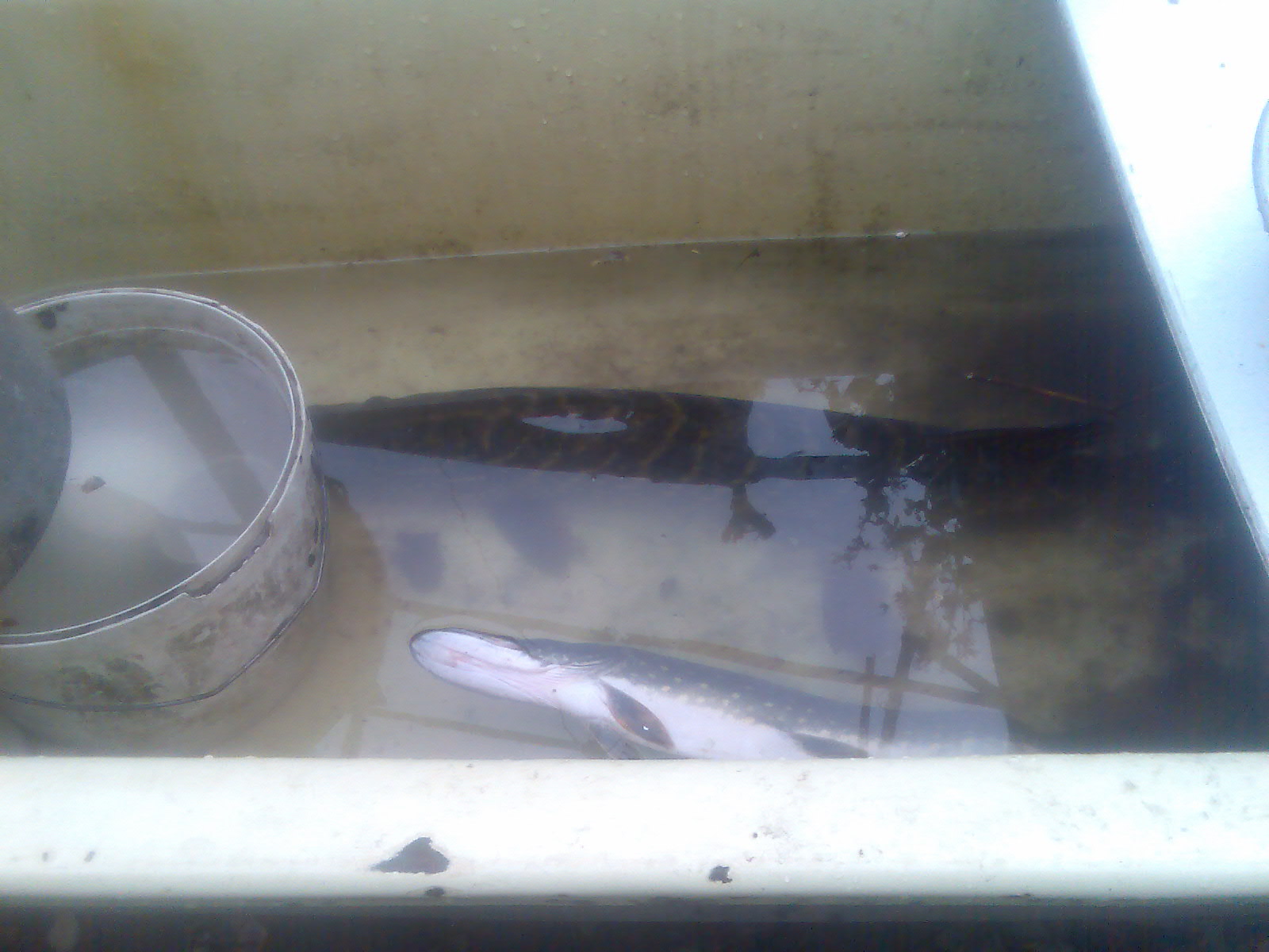 29-го с другом выехали на дачу, целью поезда была охота на щуку. Добравшись и розложившись только к вечеру, решили по темну выехать рядом на кардашинский карьер на донки.. там не 1-ой поклевки так и не увидев, поехали на дачу спать. Встав во вторник с утреца, вышли на месные озера, друг с блеснами и селиконом, я же искал воблеры местного производства... Утро было дождливое, пришев на место, друг сразу заладился кидать блесны... я тем временем достал из озерца насобирал месных воблеров. Первый заброс - есть! сработал воблерок фирмы "Krasnoper" Борьба закончилась победой зубастой.... через неск. забросов сработал воблерок "Taranka", минуты 2 борьбы - и 1.8 кг в сапете... друг бросил блесна и силикон давай ловить на мои "воблеры" ) Но дождь надоел, решили идти пообедать... Вышев на вечер товарищь через уже 15 мин. берет на краснопер 2-шку кг. До конца вечера у него же было еще 2 схода.. у меня же был 1 сход, но! последний заброс в самый ливень был удачен! сработал "Gusterka". Моя спининг фирмы "Okuma" с оранжевым концом (35 грн. рыночная стоимость) дал сразу понять что там что-то, за чем и ехали... друг спустил резиновую лодку и с подсакой поплыл за ней.. я выматывал ее минут 10. .в итоге зашла в подсаку, вечером дома отдыхая взвесили - 3,1!!! мой личный рекорд. Утро Среды было более заманчивым, уже не дождило но и ехать в город надо было к 9 утра... я пока обошел озеро, Дружок смотрю уже чтото там с удочкой мотается напротив озера, по изгибу понял что там что-то интересное.... наблюдая ии морально подедрживая с жругой стороны озера , он все же ее поборол... без подсаки вытащил за жабру на берег... опять же сработал краснопер) У меня же кроме полосатого окунька массой в грамм 200-300 ничего так и небыло... причем последний попался на своего же собрата, был отпущен. Домой щуку везли в ваганетке.. чтоб не запачкатся.. да и пакет бмв не подходил. Взвешивание показало 3.8! В общем отдохнули, подышали свежим воздухом, да и рыбалка была захватывающей.. .учитывая что на хищные виды рыб целенаправленно выехали только 2 раз в году! Понравилось очень!