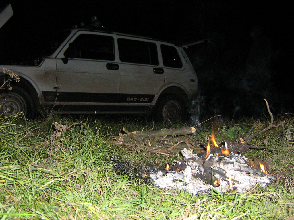 С кислыми рожами погрузились и двинули в сторону дома.Двинули не далеко - метров 20 и остановились.Машина ехать отказывалась.Она даже заводиться не хотела!Все покосились в сторону Валентина.Он сделал вид что ничего не понимает.Ни на какие уговоры машина не откликалась.Звонки всем знакомым автослесарям результата тоже не принесли.Были высказаны несколько диагнозов: коммутатор полетел, катушка полетела, игла в карбюраторе запала.Искры не было, поэтому решили что первые два диагноза вероятнее.Отправили Sywooch`a и Валентина в село за трактором (дотянуть до трассы хотябы) или запчастями (коммутатор, катушка).Sofft и Sabat костром занялись а Ленднивер машиной.Шло время."Засланные" отзвонились с плохими новостями - трактора нет, запчастей тоже!Единственное решение - позвать кого-нить из Кривого Рога, чтоб привез запчасти.Этим "кто-то" оказвлся отец Sywooch`a.Он взял запчасти и выехал из города в направлении Софиевского вдх.Остальным осталось только ждать - благо еда осталась...