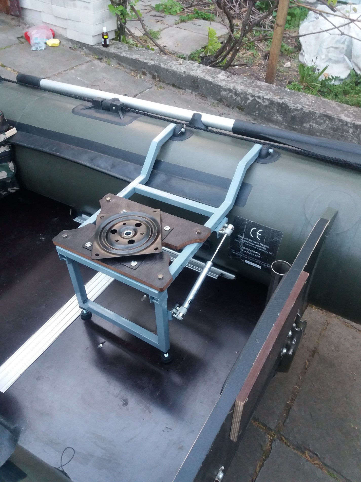 Делаем вот такую складную опору под поворотное кресло скреплением на баллоне лодки ПВХ
