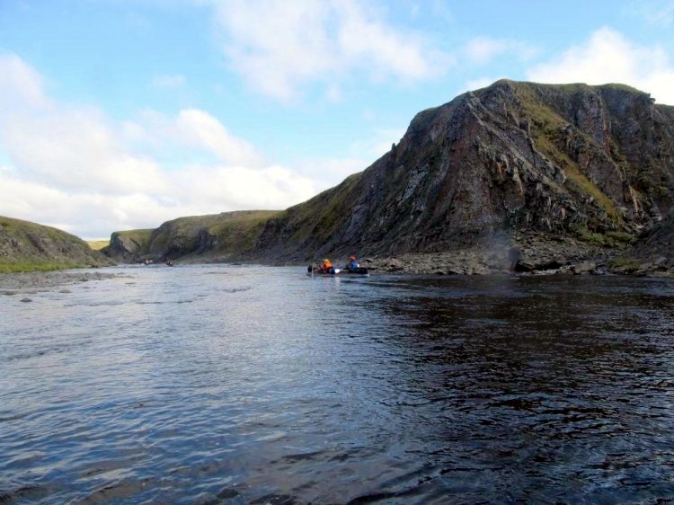 Это для тех, кто хочет постоянно «менять картинку вокруг себя». Такой тур подразумевает заброску в верховье реки на вездеходе и сплав по течению с любым количеством остановок в понравившихся местах, а таких поверьте не мало. Узкая с быстрым течением речушка сменяется широкой с красивейшим каньоном рекой, далее идет ряд шивер, с не большими водоворотами и обратками, в которых так любит стоять хариус. Некоторые рыболовы называют его «мордиусом», за особенную форму головы и ненасытный характер. Приближаясь по реке к морю, начинают попадаться чаечники – места гнездования и обитания огромного количества чаек, укрывшихся здесь от суровых ветров Карского и Баренцева морей.