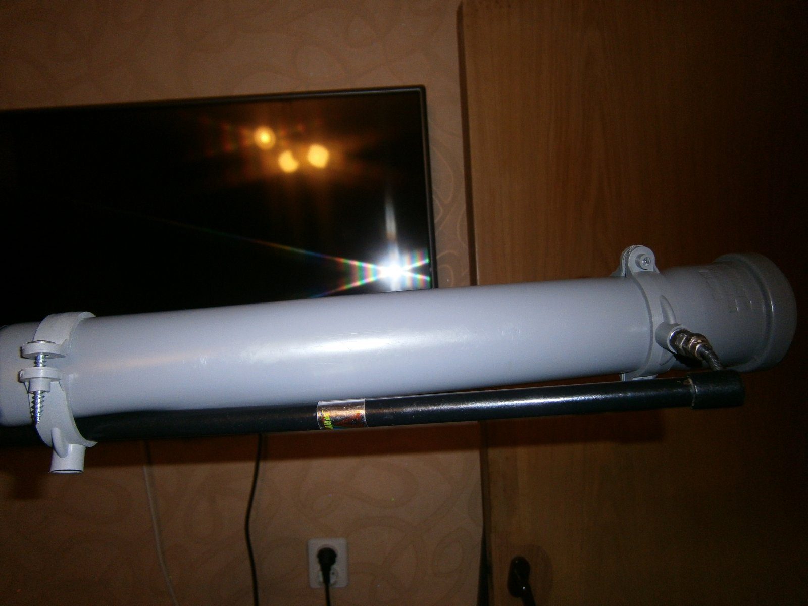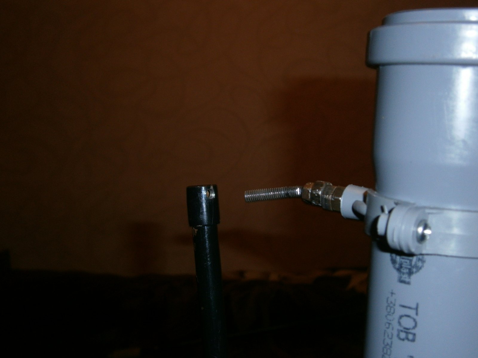 Початкові матеріали: труба водопровідна д.50, два хомути для кріплення ціє труби ( дюбель-шурупи, які в комплекті ідуть в аут ), рогач «фабричний» ( його також розбираємо, використовуємо тільки нижню трубку з отвором ), болт 6х60