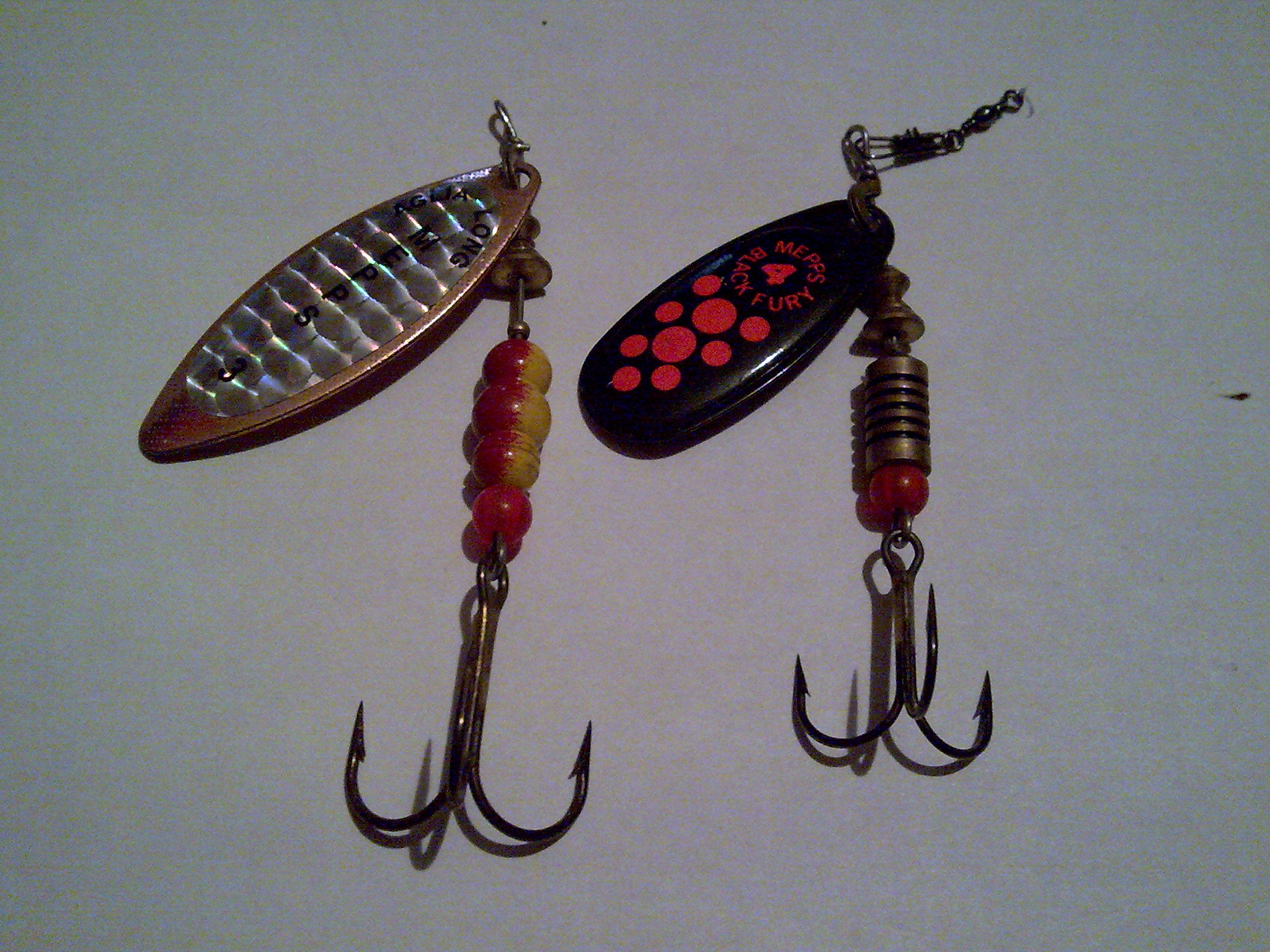 Решила и себе вертушечки подкупить. Много разных фирм, но после всего прочитанного решила брать только Mepps,- маленький наборчик в коробочке из 3-х штук, стоит у нас 15$, на самой блесне-лепестке с обратной стороны написано Made in France. Читала по рейтингу о них на basspro.com отзывы людей 5 баллов из 5-ти именно эти- Mepps Black Fury Испытать смогу только летом в Киеве, думаю на шучку. :) Есче одна вертушечка есть фирмы Thomas- наша отечественная USA, тоже летом буду испытывать, лепесток на ней если присмотреться на половину золотой и половину серебряный