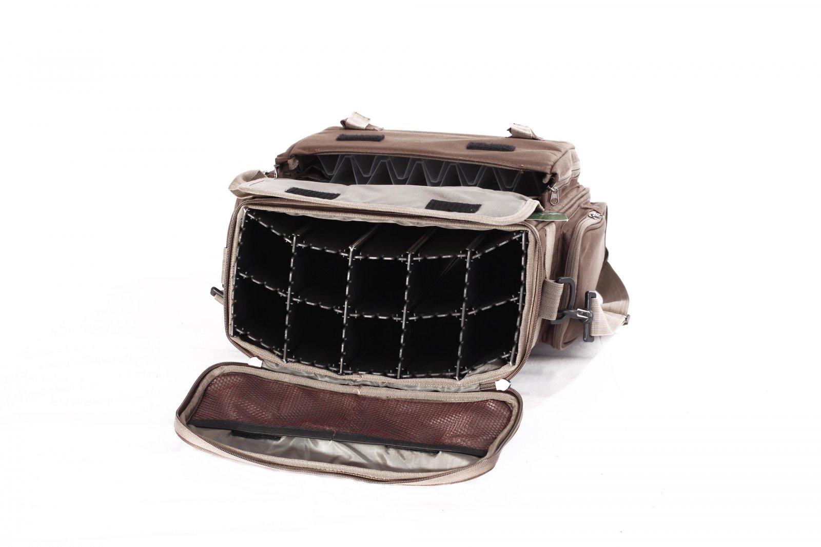 сумка весьма удобна,джерки не цепляются в кучу,в лодке можно зацепить за леер,что б не падала.но при переходах гремит-мама не горюй.а вообще доволен.