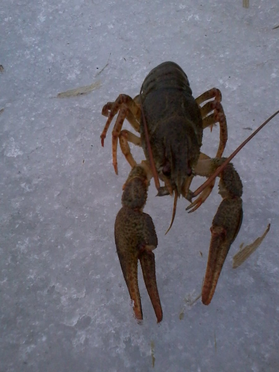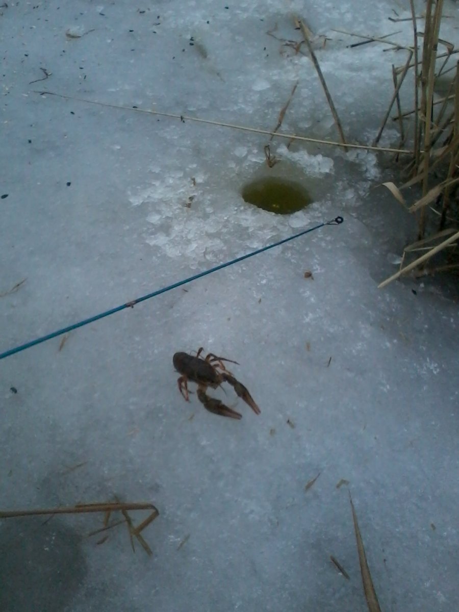 Всем пингвинам привет! Были сегодня на одном из не мнногих водойомов где ещё остался лёд с. Молодёжное (большой ставок). погода не очень (ветер, тучи, пролетал снег). Приехали значит, заходим гдето 8.30. рыбаков уже дох... . Гдето через час вытащил рака которого после фотосесии утопил. Больше до 15.00 клёва не видел. Слышал уезжавшие домой рыбаки говорили кто-то впоймал штук десять карасей 300-500гр. короче клевало у одного.