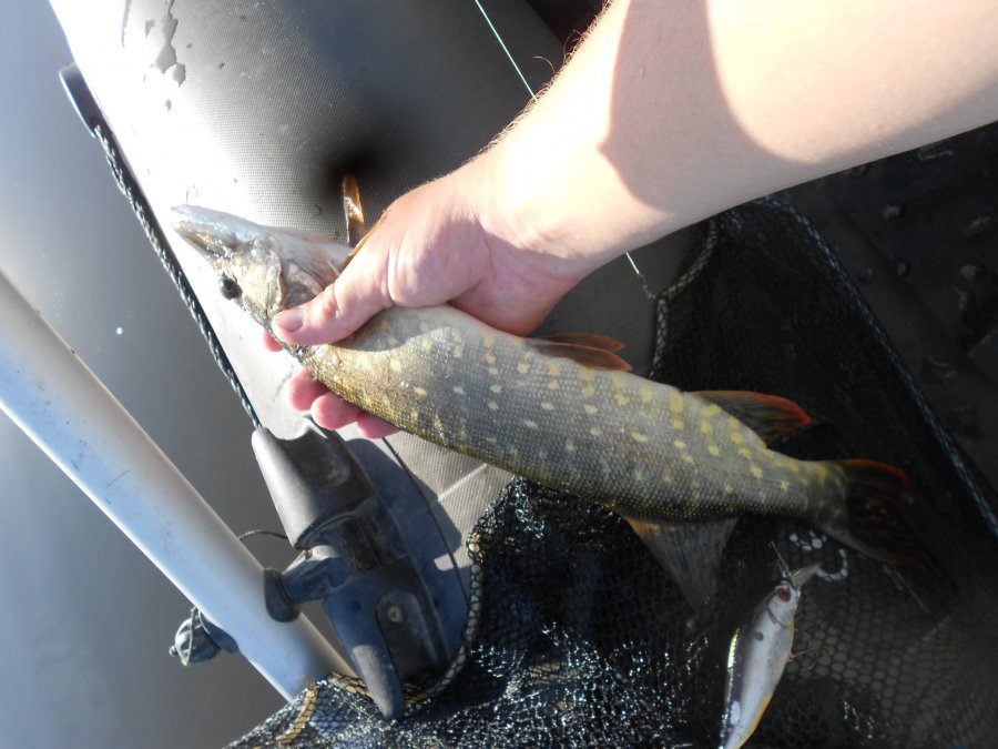 Заплыл еще до рассвета, и до рассвета взял небольшую щучку после поймал еще немного и получил пару сходов . В 10 выплыл к бате и таскал с ним карасиков. Ловили до 12.
