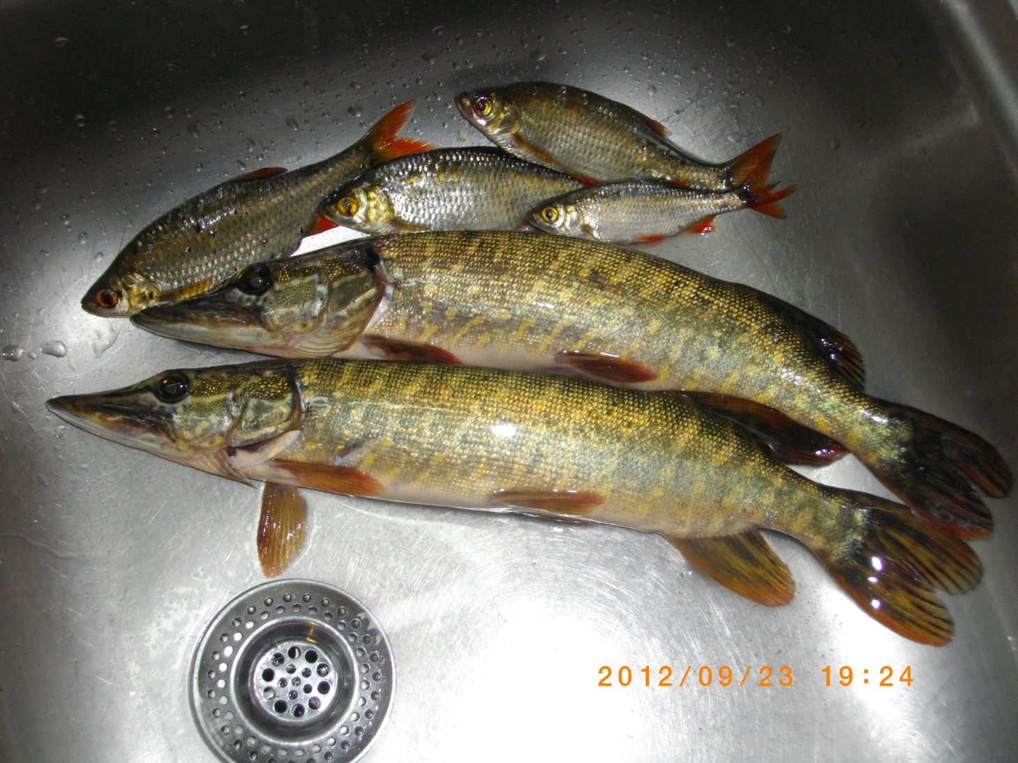 Вчера ходил на семейный пикник-рыбалку на Терновку. Доця выпросила:dewka2:. Западный ветерок, тепло, чего б и не пойти. Взял с собой прикормку "Фишка", минут через 20 на неё собралась мелкая плотвичка и краснопёрка. Я закинул пружину и поплавочную 5м, а доця ловила поплавочной 3м удочкой, всё на червя. Плотва часто попадалась (видно на фото) с чёрными подчешуйтыми паразитами. Охотничий Курцхаар поднял фазанов, полетели прямо над головами на другой берег в камыши. Через часик поймав уже десятка 2 мелочи клевать перестало, т.к. что-то активно гоняло её, то слева, то справа. Хорошо взял с собой спин на всяк случай. Достаю, как ковбой из кобуры, Флэшку. 3-4 заброса слева, 3-4 - справа, зубастики-хулиганы извлечены:hook:, солнце уже как-то быстро стало садиться и сразу поднимаются комары, пора домой. По пути спрашивал спиннингистов, результаты не радостные, ну а мы довольные, не смотря на размер "добычи".
