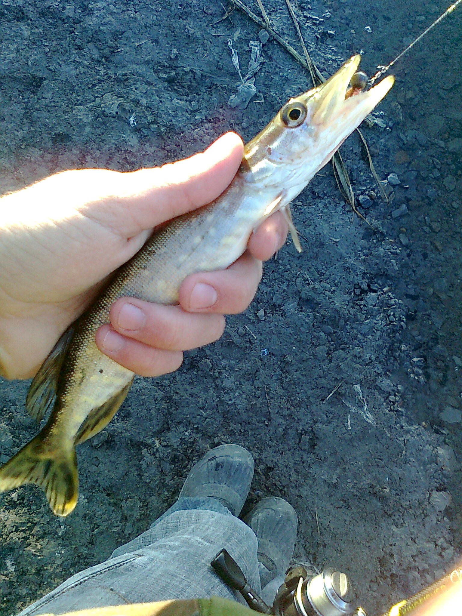 Всем привет..20.10.2012 Малый разлив, с 7- до10 часов утра. Ловил в основном воблерами. С самого утра было два удара, они же в будущем закончились сходами... первая щучка где то до 700 гр, вторая совсем карандашик не совсем обидно.( размер по ощущениям..то есть примерный.) После этих 2 х сходов полный ноль...